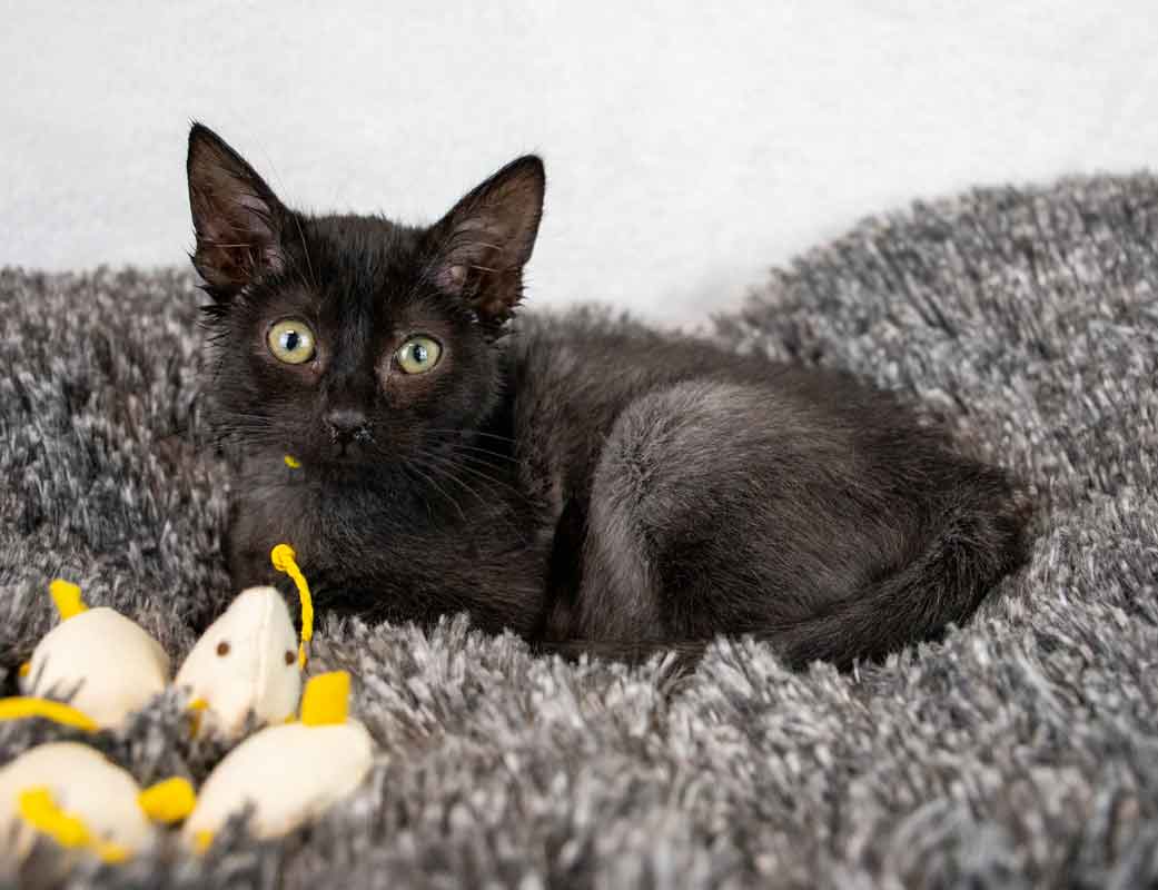• LIKES/DISLIKES: I love to play and am always up for the next big adventure. Chasing and playing can wear a kitty out, so save a place near you for some cuddles while I recharge! / I can’t think of any dislikes since I am a kitten, but I would not be happy if I did not get the love and attention all kitties deserve!