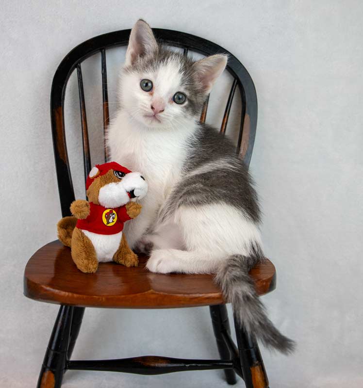 • OTHER CATS/DOGS/KIDS: I get along great with my siblings, and I IMMEDIATELY flipped over on my back and showed my belly to the cats who lived in my former foster home. I may enjoy another kitty in my new home, so if you have a nice kitty at home who may enjoy a kitten friend, let’s meet! / The 100 lb. German Shepherd in my former foster home did not faze me. It likely will depend on the dog, but if you have a kitty-friendly doggie at home, we can probably be pals. / Children in my new home may be nice, since I am a playful kitten. Best they are gentle and know how to handle a kitten, and – of course, let’s meet!