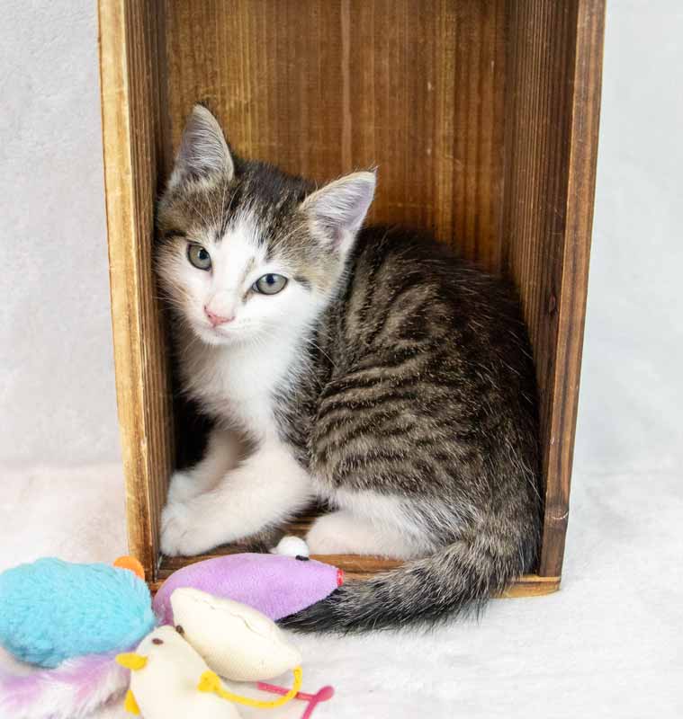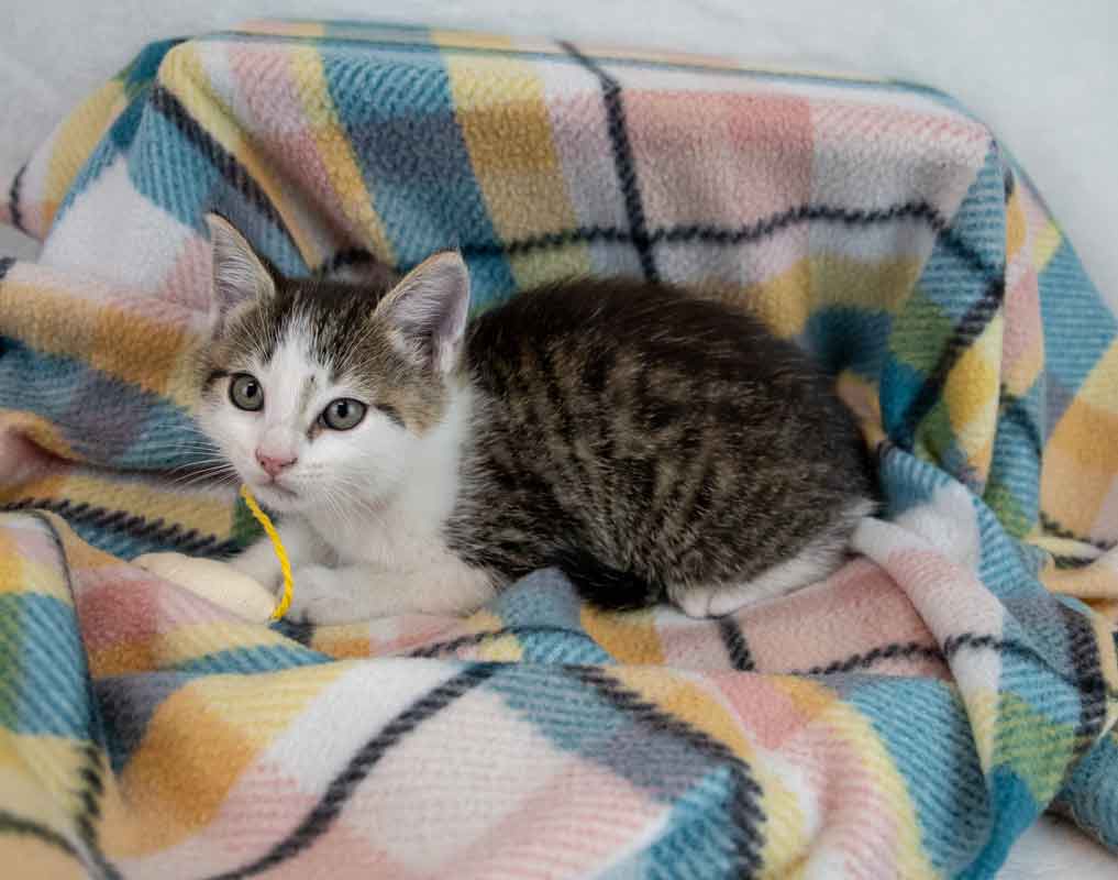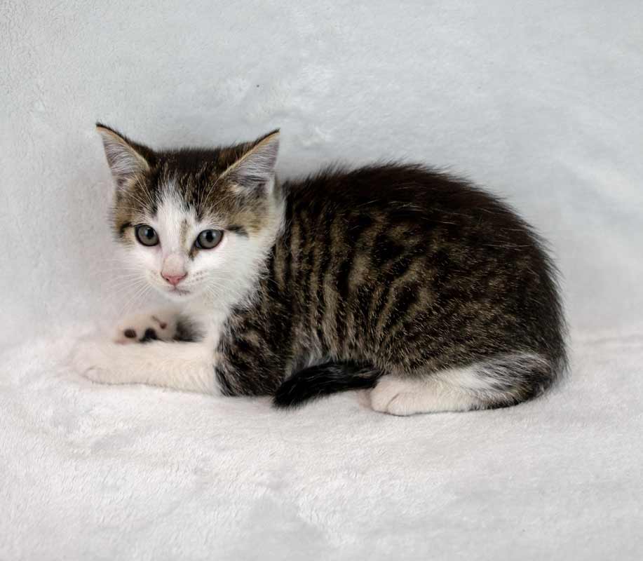 • OTHER CATS/DOGS/KIDS: I get along well with my sibling, and I am quite tolerant of his AMAZING energy. I may enjoy another kitty in my new home. If you have a nice kitty at home who may enjoy a kitten friend, we would likely be pals. / I took a while to warm up to the dog in my foster home, but I learned to accept him, his sniffing and even licks. I even sassed him back when he accidently scared me by jumping on the bed without his usual warning. It likely will depend on the dog, but if you have a kitty-friendly doggie at home, we can probably be pals. / Children in my new home may be nice, but best they are gentle and know how to handle a kitten. Small children seem a bit much for me at first, but I’ll come out of hiding to play. If they are too rambunctious, I just avoid them. Slightly older kids (age 6-8) would be the best match and – of course, let’s meet!