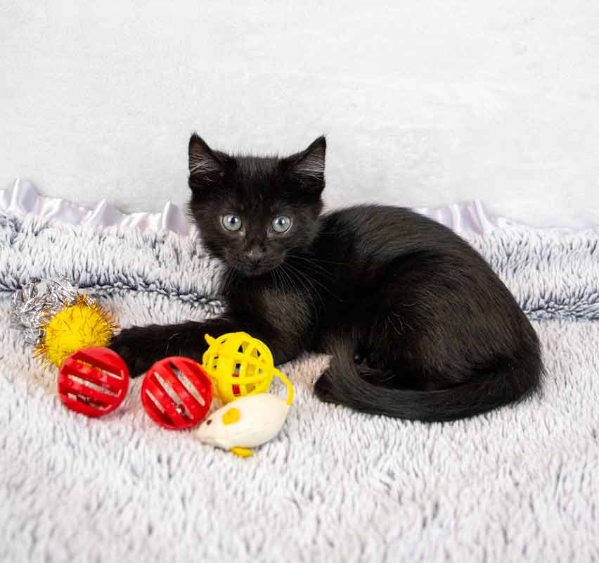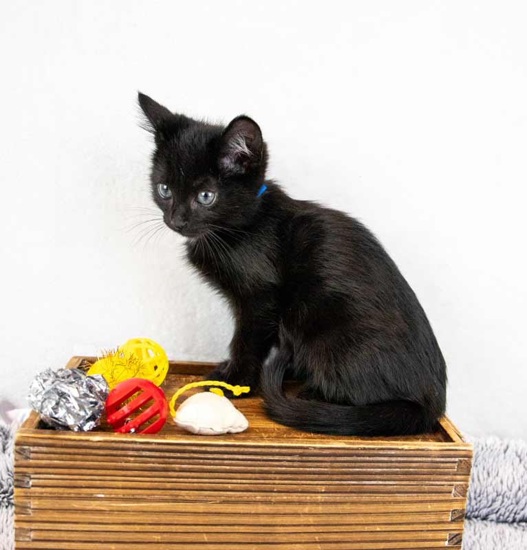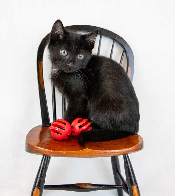 • LIKES/DISLIKES: I love to chase wand toys like a fierce hunter, pounce on spring toys, bat around crinkle balls, and zoom through my tunnel like it’s a secret passage. Like my sister Lime, my favorite spot to lounge is perched in the window – watching the world go by. Catnip mice are my “prey,” and climbing cat trees makes me feel like a queen of the jungle. When I’m all tuckered out, I curl up in a cozy cuddle puddle, dreaming sweet kitten dreams until it’s time to love and play all over again! / I can’t think of any dislikes since I am a kitten, but I would not be happy if I did not get the love and attention all kitties deserve!