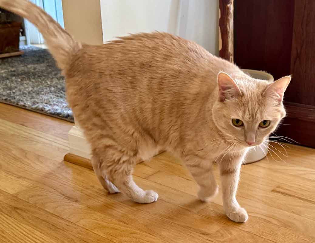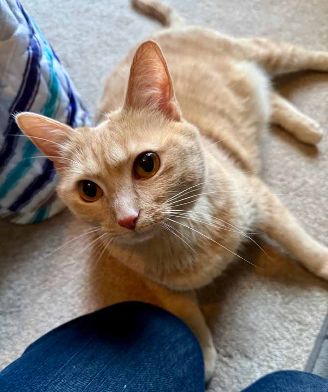 • PERSONALITY INFORMATION: I was a bit confused about losing my home of two years, and it took me a little while to show my true loving and sweet nature in my foster home. I spent a good bit of time hiding away from the goings on in the house and not eating very well. Even treats did not interest me. Though I’m still a bit skittish around people I don’t know and new sounds, I’ve settled into my foster home nicely and am now confident enough to explore the house and watch the birds from the window. I’m not a lap kitty, but I will sit next to my foster and ask for attention with gentle head butts. As I’ve opened up, I have become more social – following my foster everywhere. Gentle with the sweetest little meow, my foster says I am ‘a joy to have around’. I bet you will agree!