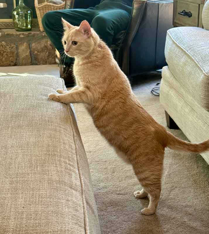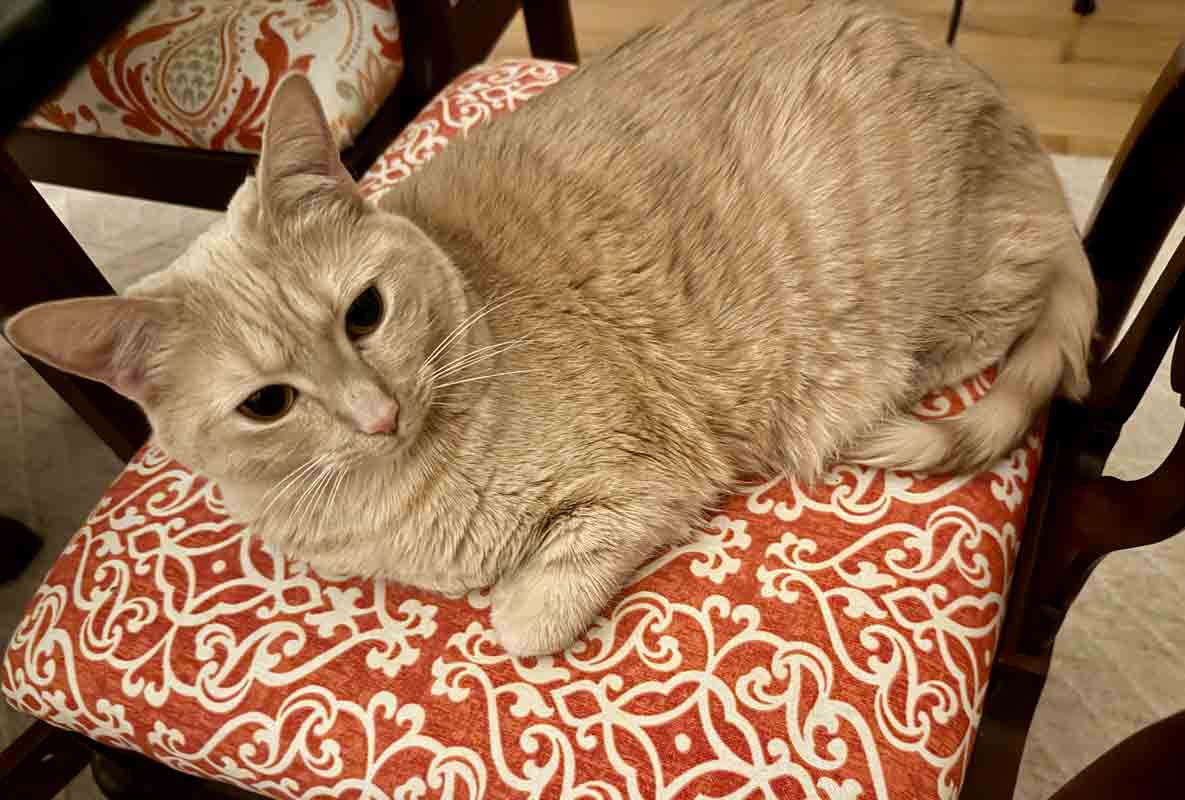 • LIKES/DISLIKES: I love to hang out with my foster – sitting nearby and collecting all the petting I can. I will gently remind her to keep the attention coming with a soft head butt. I also like catnip and will play with a fun wand toy when the mood strikes. Making use of the scratching post, I’ve been a great houseguest with no destructive scratching, so have a post handy in my new home, please. I’ve discovered my love of ‘Temptations’ treats and enjoy mealtime with yummy ‘Sheba’ cat food. I also let my fosters get a good night’s sleep, as I curl up at the foot of their bed – remaining quiet during the night. / Though I’ve opened up in my foster home, I will likely need some time to adjust in my new home, so please don’t rush me. Give me some space and time, and I will surely reward you with love and affection – just as I am now doing in my foster home.