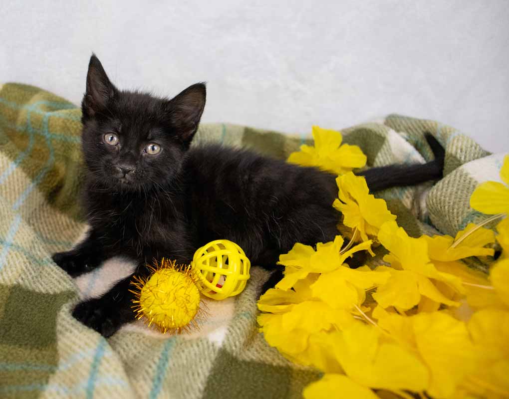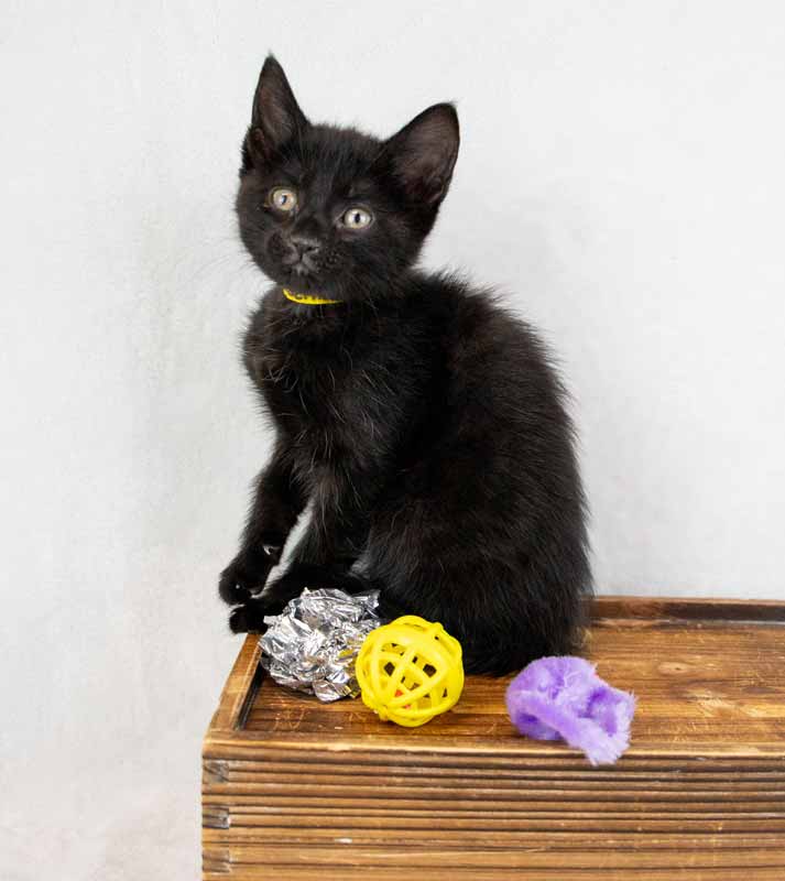 • LIKES/DISLIKES: I love to play, wrestle and chase my siblings. The kitty toys certainly get my attention and I LOVE finding a lap to sit in or a volunteer to climb on. / I can’t think of any dislikes since I am a kitten, but I would not be happy if I did not get the love and attention all kitties deserve!