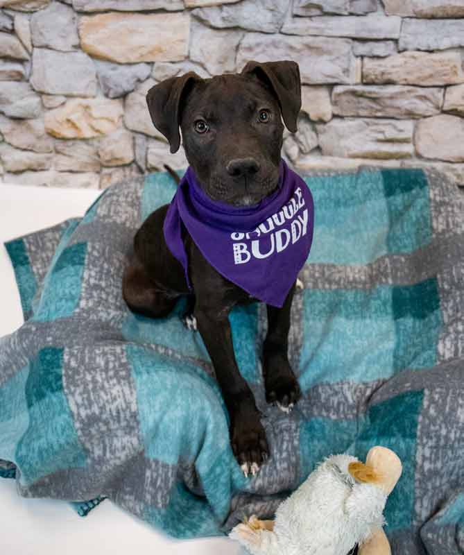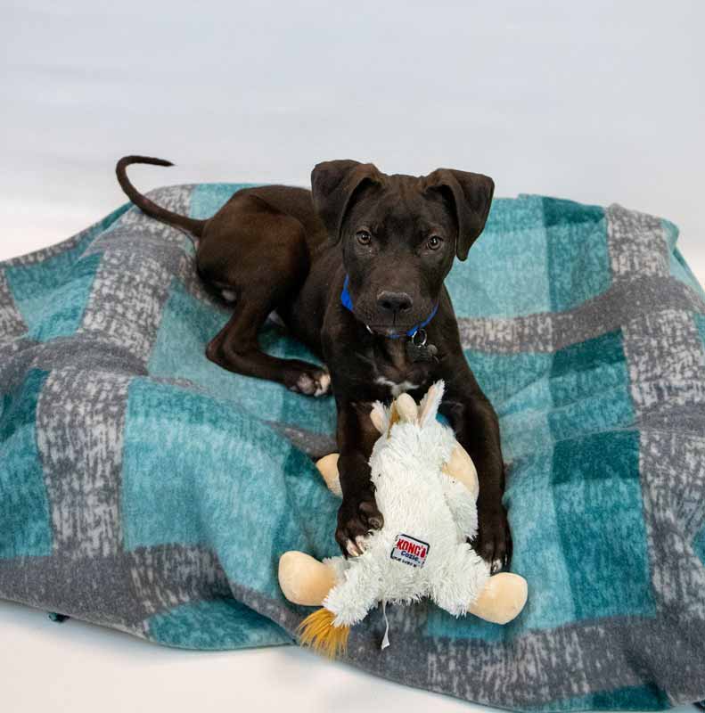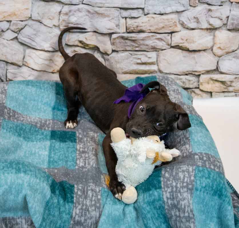 • LIKES/DISLIKES: I love a variety of toys including rope toys, as well as the squeaky ones – and I haven’t destroyed them looking for the squeaker either! When I’m not playing, I think snuggles and belly rubs are FANTASTIC! / A social pup, I don’t care to be alone too much, and I wasn’t a fan of car rides, though I’m already improving! Otherwise, I can’t think of things I don’t like yet since I’m so young, but I’m sure I wouldn’t like it if I didn’t get enough love, attention, exercise, and training.