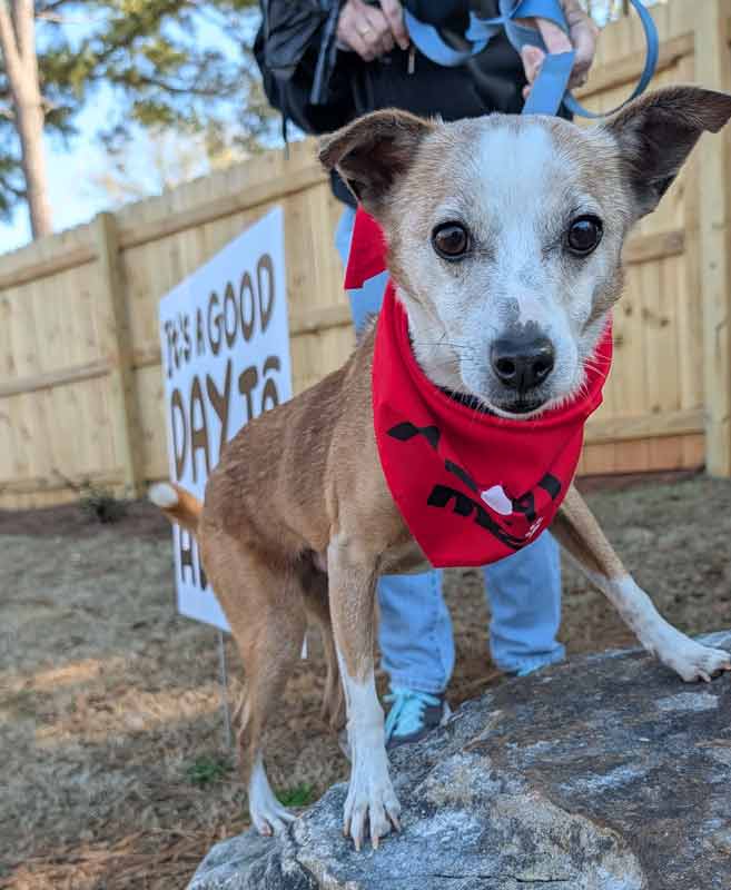 • PERSONALITY/ENERGY LEVEL: My foster describes me as sweet and energetic, but also independent. I’m not a big cuddler, but I accept affection sitting next to my fosters on the couch and sometimes nuzzling up to them or climb into their lap to be petted. This has increased in frequency as I’ve become more comfortable. Initially, I would give ‘warning nips’, not breaking the skin, when I was uncomfortable with something or overstimulated, but I have stopped doing that now and am super grateful for the great care and kindness I get here. / My energy level is 5-7 so I’ve still got some pep in my step.
