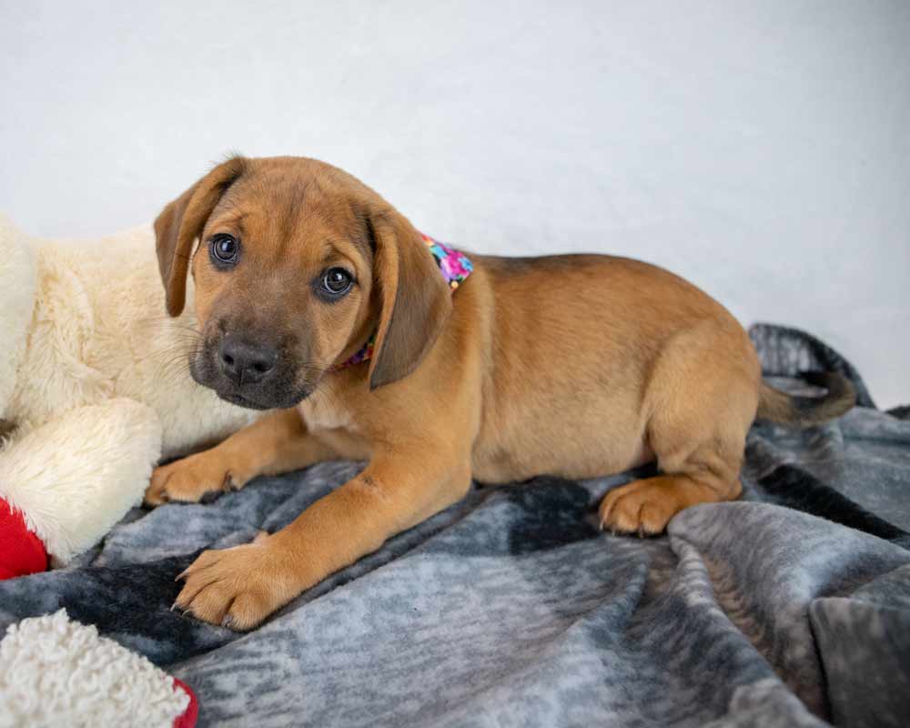 • OTHER DOGS/CATS/KIDS: I loved my siblings and the other dog in my foster home, too. I understand her corrections and like to nap with her. Of course I like playing with other dogs, too. So, if you have a nice dog already that would like a puppy friend, let’s meet! / Cats unknown. / I’ve met kids that were 8 years old and older in my foster home and I liked them! Of course, I’m in the mouthy stage of puppyhood, so have a toy to redirect me when I get playfully mouthy with the kids. Best no toddlers that may fall on me.