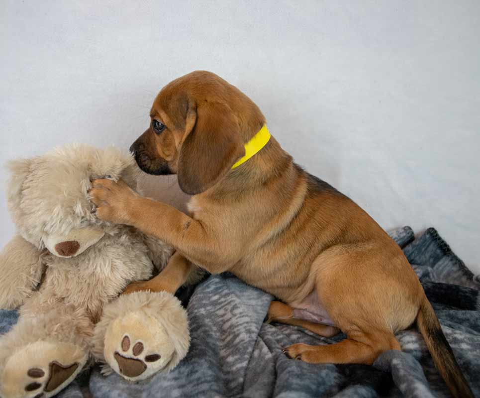 • LIKES/DISLIKES: I love playing with my people and other dogs – so let’s bust out the toys for a game of fetch and some Nylabones for chewing on. I also love ice cubes from the freezer – yum! Of course I take plenty of naps (I am a puppy, after all) and do tons of cuddling with my people which is awesome! I’ve started to learn how fun exploring is, and I am big enough to climb the stairs now, so keep a close eye on me as I’m learning the rules of my new home. I’m sure we’ll find lots of other things we will love doing together as I grow up. / I’m not a huge fan of the bath yet, otherwise I’m sure I wouldn’t like it if I didn’t get enough love, attention, exercise, and training.