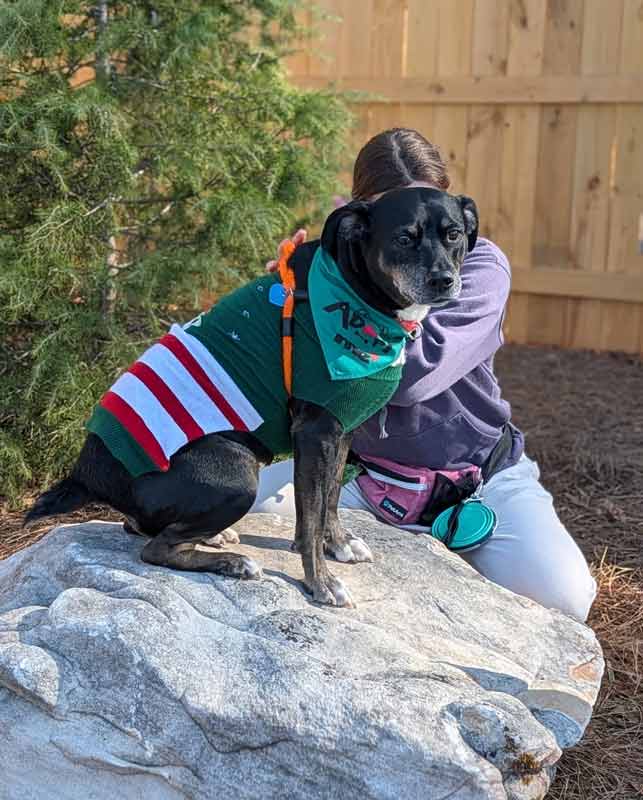 • LIKES/DISLIKES: Being with my people is just the best, and I love all the attention and cuddles that come my way. Playing fetch, chewing on bones, giving and receiving kisses, playing with toys, zoomies around the back yard, giving and receiving snuggles, and going for car rides are a few of my favorite things. My foster has been taking me on walks every morning, and I really look forward to those. Long naps after playtime are awesome! During a recent outing to a brewery with my foster, I wore a sunhat and had the best time soaking up the sunshine. I met several people there that I really liked, and I happily sat pretty for them in exchange for a treat. / I can be a bit nervous, so sudden movements at the shelter can startle me. I wouldn’t like a home with a lot of folks coming and going or where I’d be rushed. I’m not a fan of having my feet held. I do alert bark at strangers walking by and the delivery man in my foster home. Otherwise, I’m sure I wouldn’t like it if I didn’t get enough love, attention, exercise, and training.