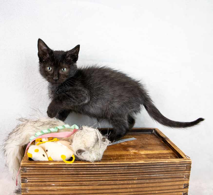 • LIKES/DISLIKES: When it is playtime, my favorite toy is the feather wand. When it’s cuddle time, there is no place better than a warm, comfy lap. I will contentedly purr my appreciation for all the snuggles that come my way. / I can’t think of any dislikes since I am a kitten, but I would not be happy if I did not get the love and attention on which I thrive!