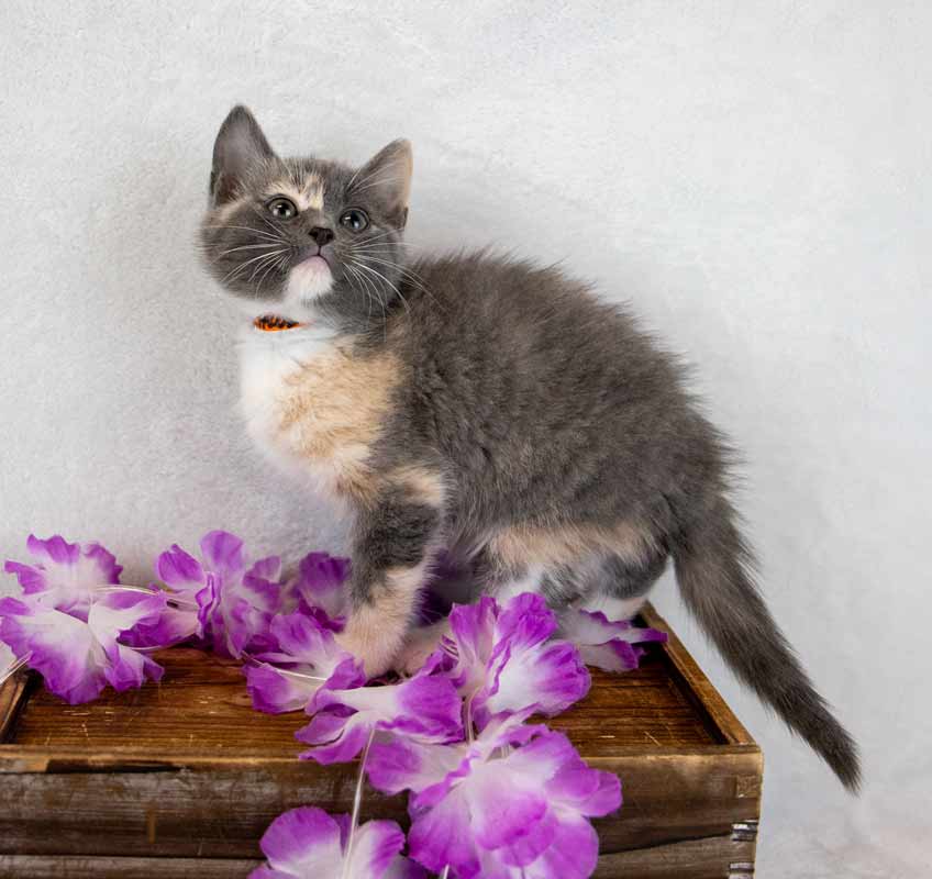 Hi, my name is Chloe! My siblings and I came to Mostly Mutts at just 2 weeks old. We were so glad that Mostly Mutts was able to take us and our momma into their program and immediately got us into a great foster home. We’ve spent time there – growing and frolicking – doing ‘all things kitten’. Now, we are ready to meet our new families and have taken up residence in the Kitty Room at the shelter. Come by and meet me soon!