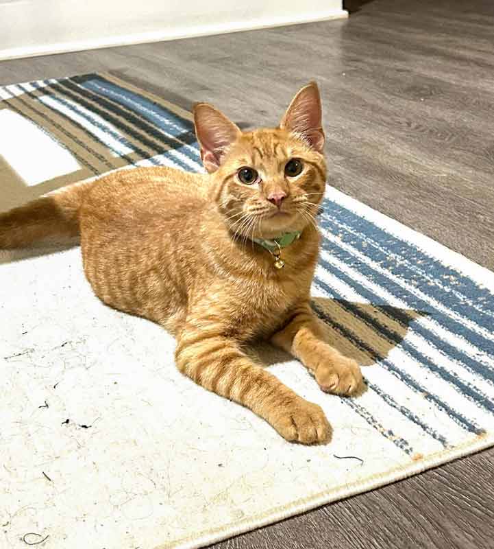 • LIKES/DISLIKES: When I’m not zooming around or discovering new things, I really love a good cuddle. I’ll curl right up with you for some snuggles, especially after a long day of adventures. I also like hanging out in my cat tree. Those cubbies are super cozy for naps! Oh, and if you have Churu treats ... you’re my favorite person ever. I slurp those down like it’s my job. / I can’t think of any dislikes, since I am a kitten, though I would not like it if I did not get the love and attention all kitties deserve!