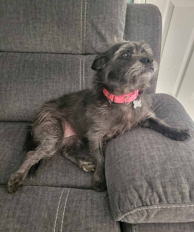 • LIKES/DISLIKES: I like playing with squeaky toys & Nylabones, going for walks, sniffing around the yard, being brushed, cuddling under fluffy blankets & throw pillows (or on them), riding in the car (I’ll excitedly jump in!) & sitting in the sun. Once I’m comfortable, I’ll ask for tummy rubs & butt scratches. I can also entertain myself with a toy or bone, like I do while my foster mom is working from home. Treats are nice & I even like healthy ones like green beans, carrots & red peppers! / I don’t like it when people move too fast or don’t give me time to trust them & I haven’t been fond of some men. I also don’t like it when the doorbell rings. I’ll run to the door and let my foster know there’s a stranger by barking until she comes to check so I can make sure it’s safe. I'm also not a fan of the rain or thunderstorms — too bad they don’t make doggie umbrellas! I don’t enjoy being picked up & carried until I know I can trust you. I’m sure I wouldn’t like it if I didn’t get enough love, attention, exercise & training.