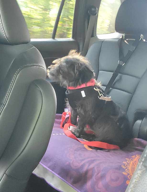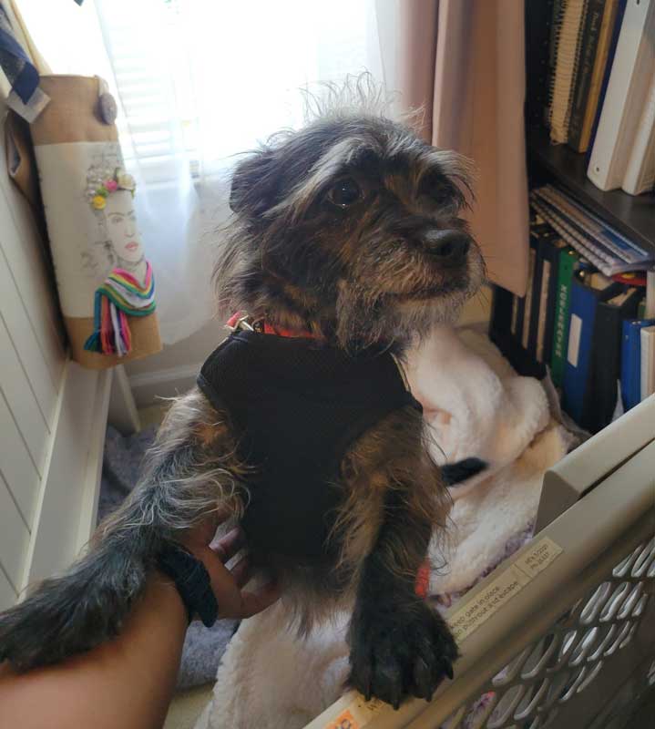 • LIKES/DISLIKES: I like playing with toys, Nylabones, going for walks, being brushed, cuddling under fluffy blankets, ear scratches, riding in the car (I’ll excitedly jump in!), rolling around on my back with a toy, and sitting in the sun on a nice day with the nice volunteers. I soak up the attention that I get from the volunteers once I’m comfortable with them, asking politely for tummy rubs in the grass. I can also entertain myself with a toy or bone, like I do while my foster mom is working from home. / I don’t like it when people go too fast with me and don’t give me time to trust them, and I haven’t been fond of some men. I'm also not a fan of the rain so it’s too bad they don’t make doggie umbrellas! I don’t enjoy being picked up and carried until I know I can trust you. I’m sure I wouldn’t like it if I didn’t get enough love, attention, exercise and training.