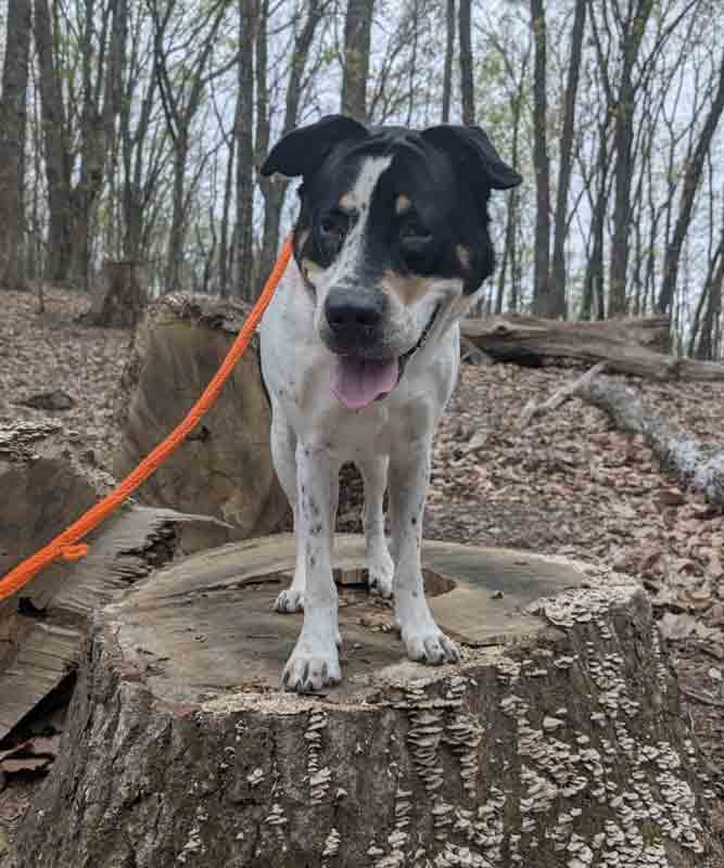 • PERSONALITY/ENERGY LEVEL: I'm sweet, gentle, and a little goofy. I love sniffing around — I'm a hound, after all — and I’m always curious and ready to use my nose to explore. I can be playful and silly, but I’m just as happy to chill and relax with you. I am a happy boy, and my temp. foster described me as a sweet pup who ‘lights up every room I walk into.’ I would love to brighten your day as well! I’m aware of my size, so I don’t play too roughly or knock anything over while playing. I couldn’t resist sneaking my front paws onto the counter a few times to sniff what my foster was cooking, but with a firm “leave it,” I quickly hop back down. I’m a good boy for my baths, so that’s a plus, too! / Energy level: 6-8.